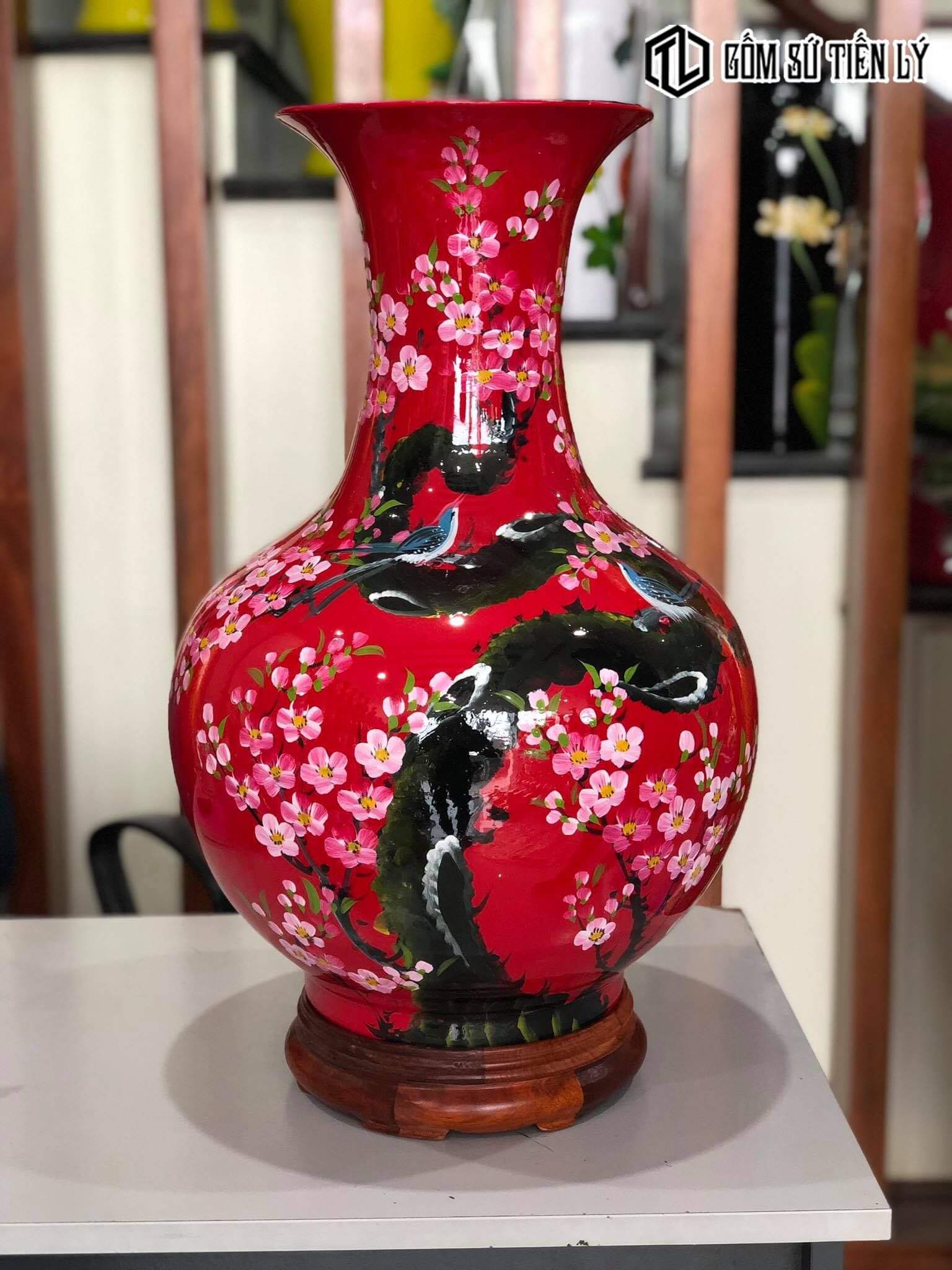 Bình hoa sơn mài vẽ hoa đào-TLM54